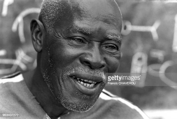 Portrait du poète ivoirien Frédéric Bruly Bouabré à Abidjan, en mars 1995, Côte d’Ivoire. (Photo by Francis CHAVEROU/Gamma-Rapho via Getty Images)